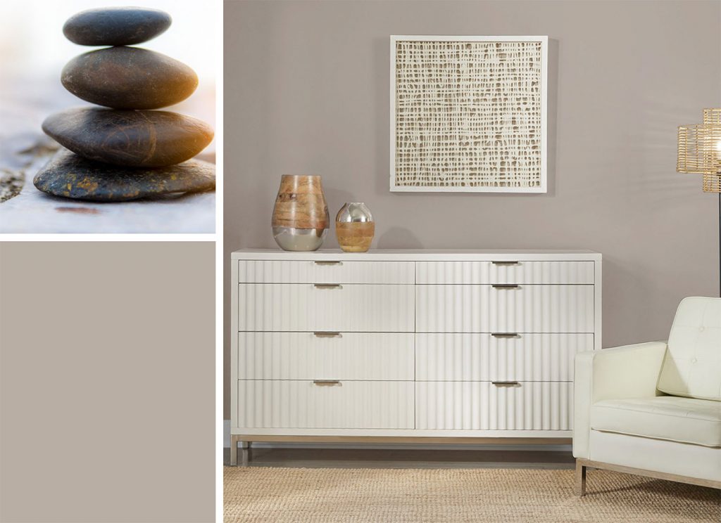 Xám và trắng luôn là combo màu sắc dễ chịu. Tuy nhiên tông Nightingale Gray mà Behr chọn cho xu hướng nội thất 2022 ngả sắc ấm áp hơn khi so sánh với màu xám công nghiệp