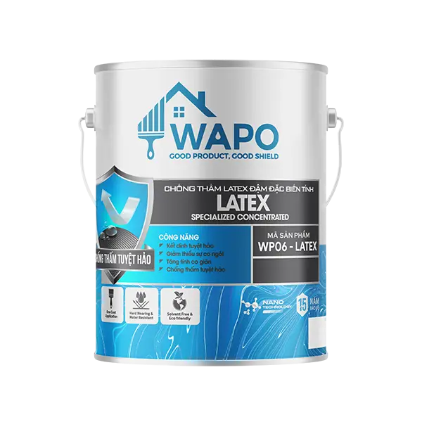 WP06 – LATEX là chất chống thấm kết nối thế hệ mới đậm đặc gấp 2 lần loại thông thường, cũng là sản phẩm trộn xi măng phù hợp nhất trong tất cả các loại chống thấm hiện nay.